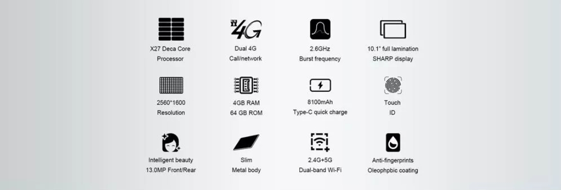 1. Original Box Teclast T20 Helio X27 Deca Core Dual 4G Android 7.0 OS 10.1 Inch Tablet