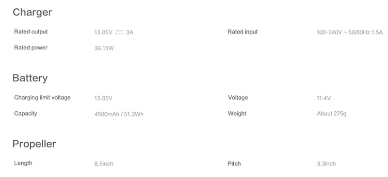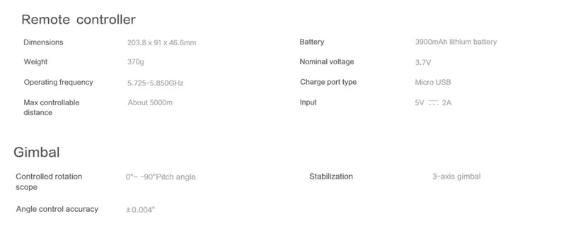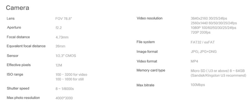 아래는 FIMI X8 SE의 세부 스펙입니다.