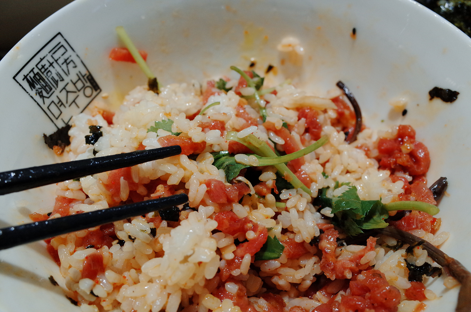밥알이 하나도 안 눌리고 맛있게 비벼졌습니다.