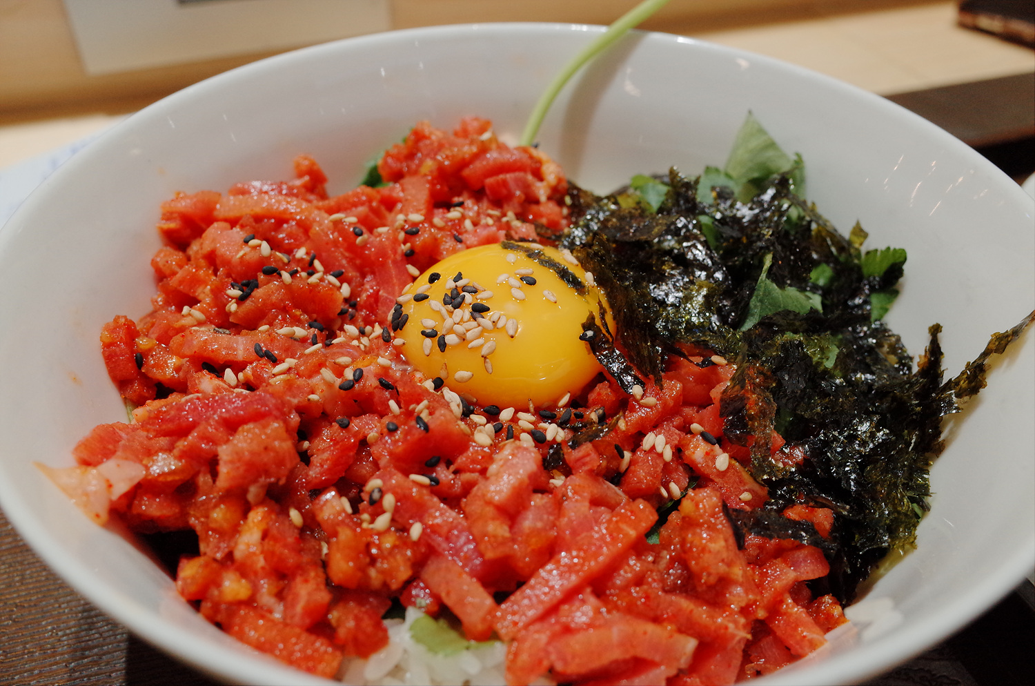 육회를 찍어 먹어봅니다. 정말 맛있어요!! 육회도 신선해요