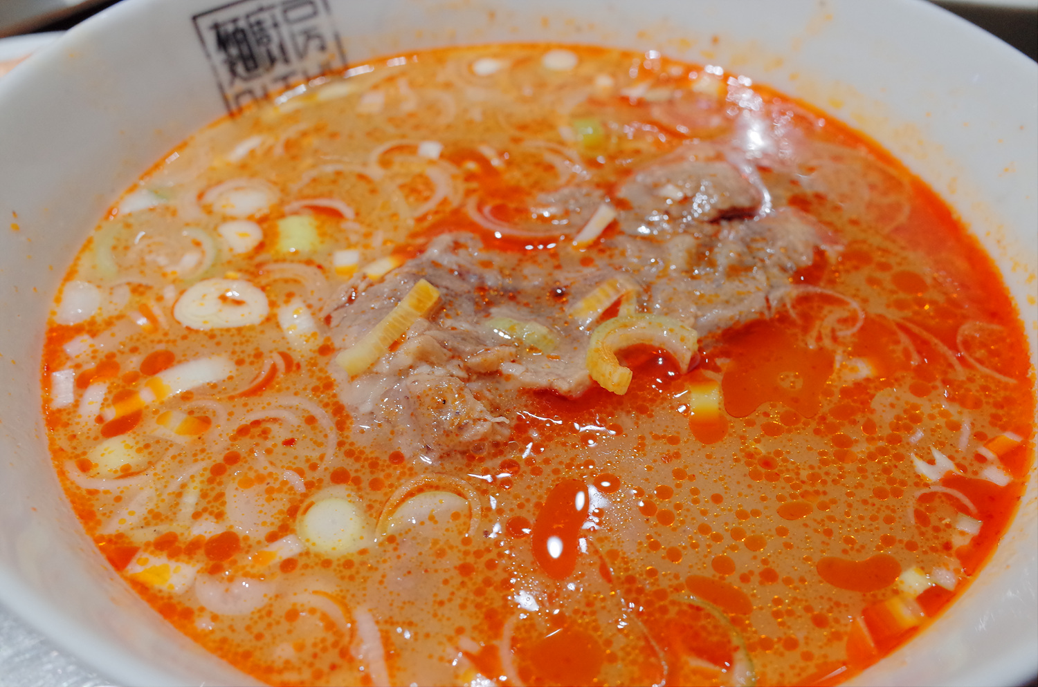 그리고 이건 매운 갈비국수입니다. 국물 아래 고기가 엄청나게 많고 엄청 큽니다.