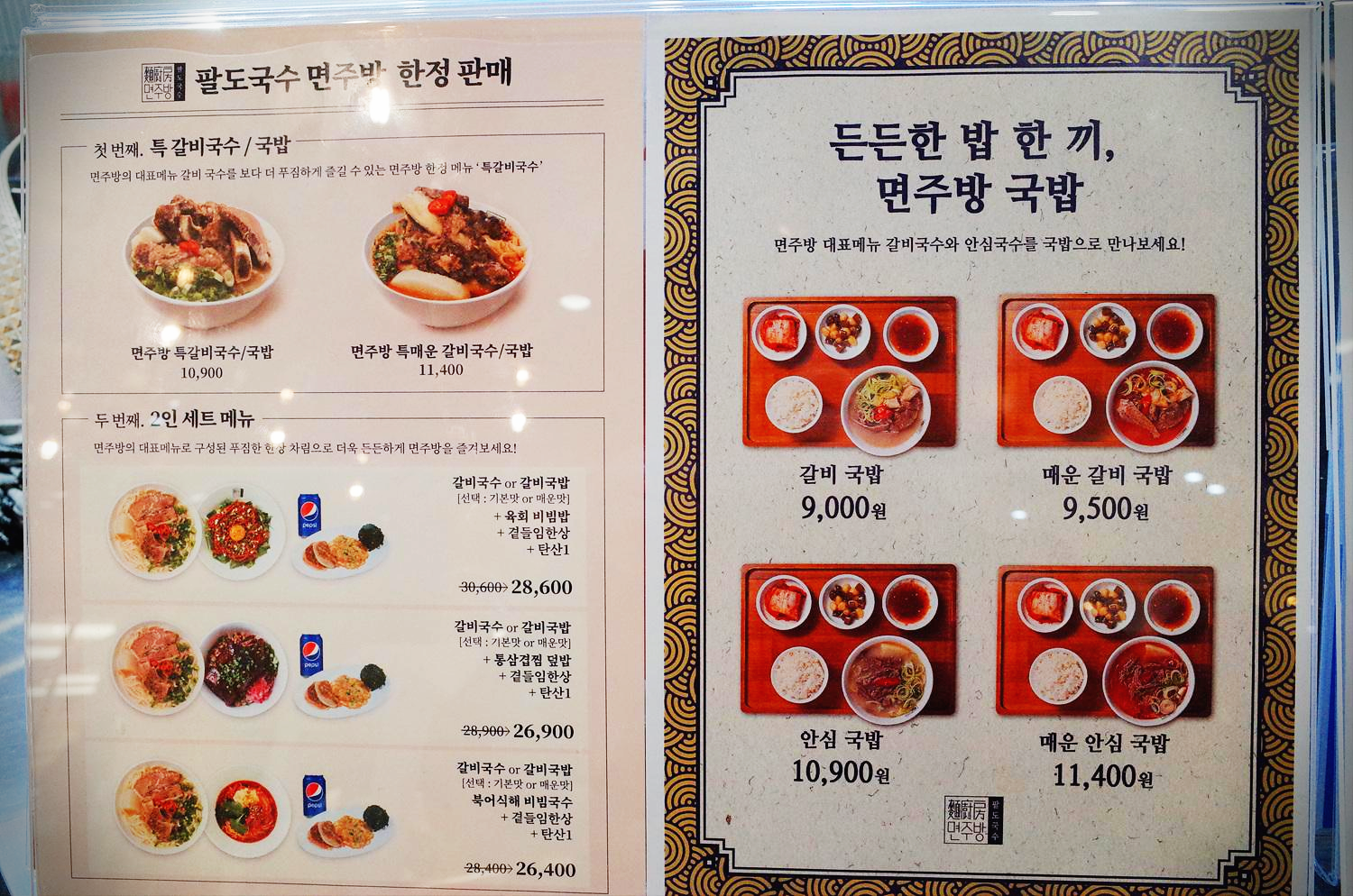 오랜만에 고속터미널역 센트럴시티에 들러서 저녁을 먹기로 했습니다. 센트럴시티에는 맛집들이 정말 많은데요. 그중에 센트럴시티 안에 있는 팔도국수 면주방에 갔습니다. 원래는 가면서 먹으려고 정한게 있었는데 지나가다가 메뉴판 보고 급 결정해서 면주방 음식을 먹게 되었습니다.