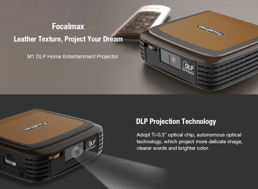 1. Focalmax M1 DLP Projector - Sandy Brown EU Plug