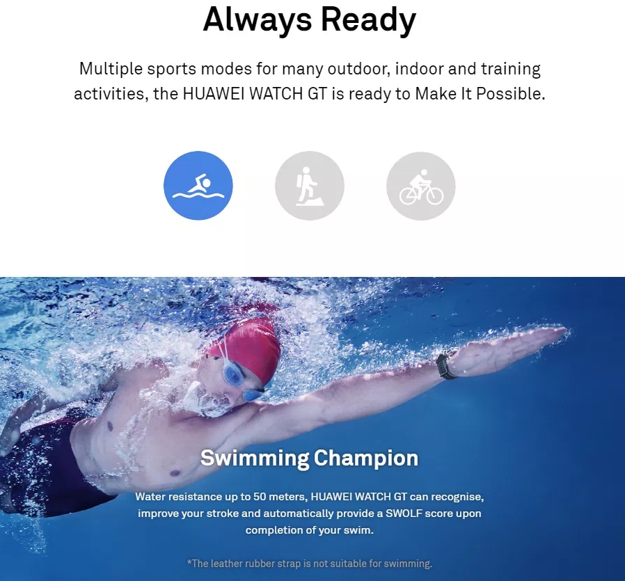 화웨이 GT 스포츠 스마트워치는 운동시 더욱 진보된 방법으로 운동 코칭을 해줍니다. 또한 화웨이 GT 스마트워치는 운동에도 매우 특화된 제품이라 수영, 달리기, 싸이클, 등산, 걷기 등 야외 및 실내 운동에도 아주 효과적으로 도움이 됩니다.