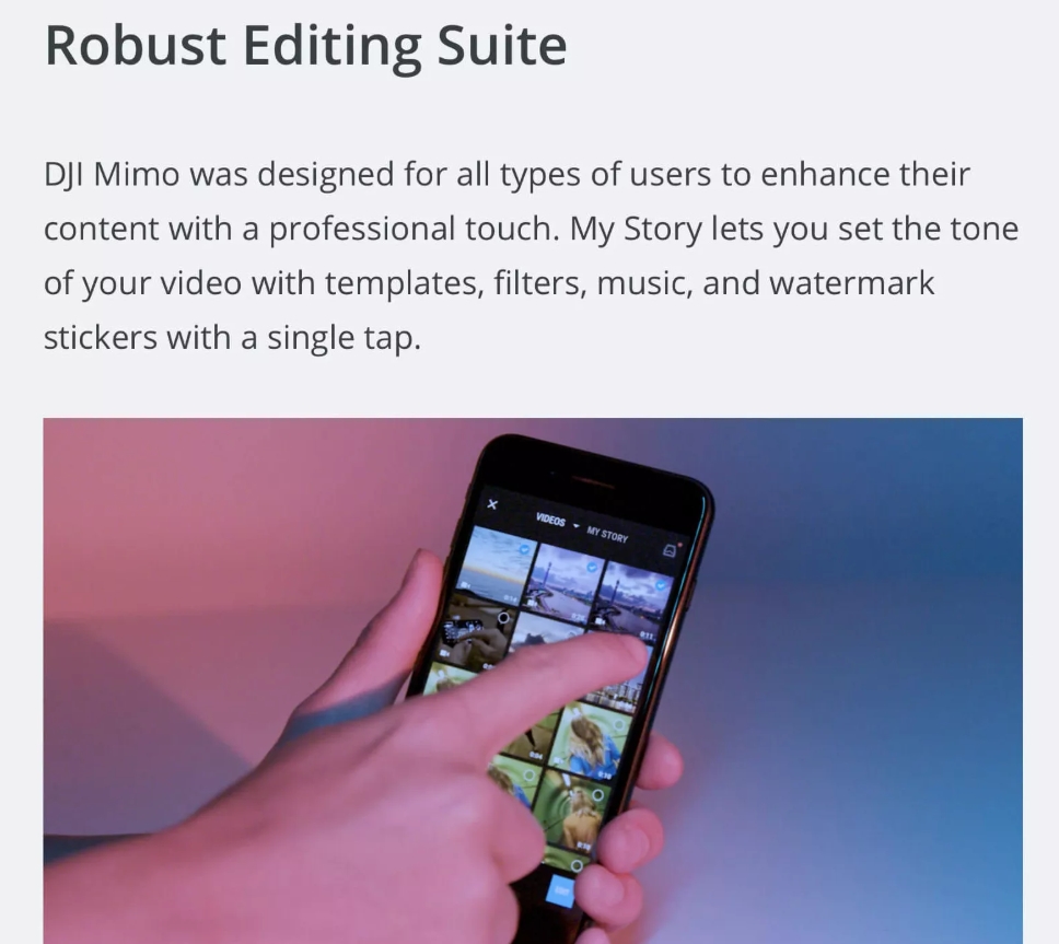DJI Mimo에서는 사진을 전송하여 받을 수도 있지만 편집도 가능합니다.