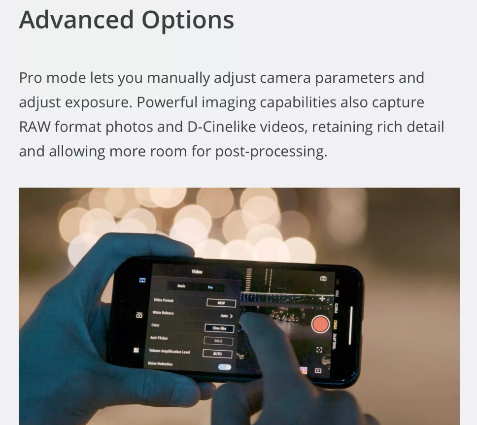 오스모 포켓을 더욱 전문적으로 촬영하고 싶으시면 세부적인 촬영 셋팅이 가능합니다.