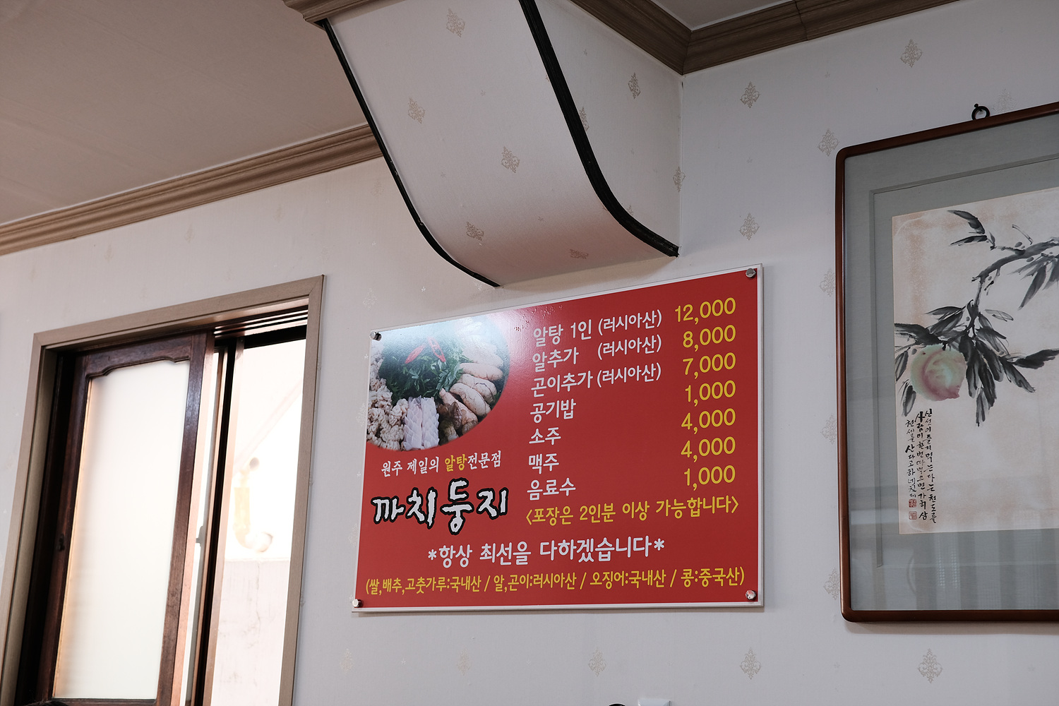 메뉴는 간단합니다. 알탕뿐입니다. 저희는 알탕 2인분을 시켰습니다. 기본 양도 양이 정말 많으니 혹시 더 드시고 싶으면 나중에 추가하시면 됩니다.