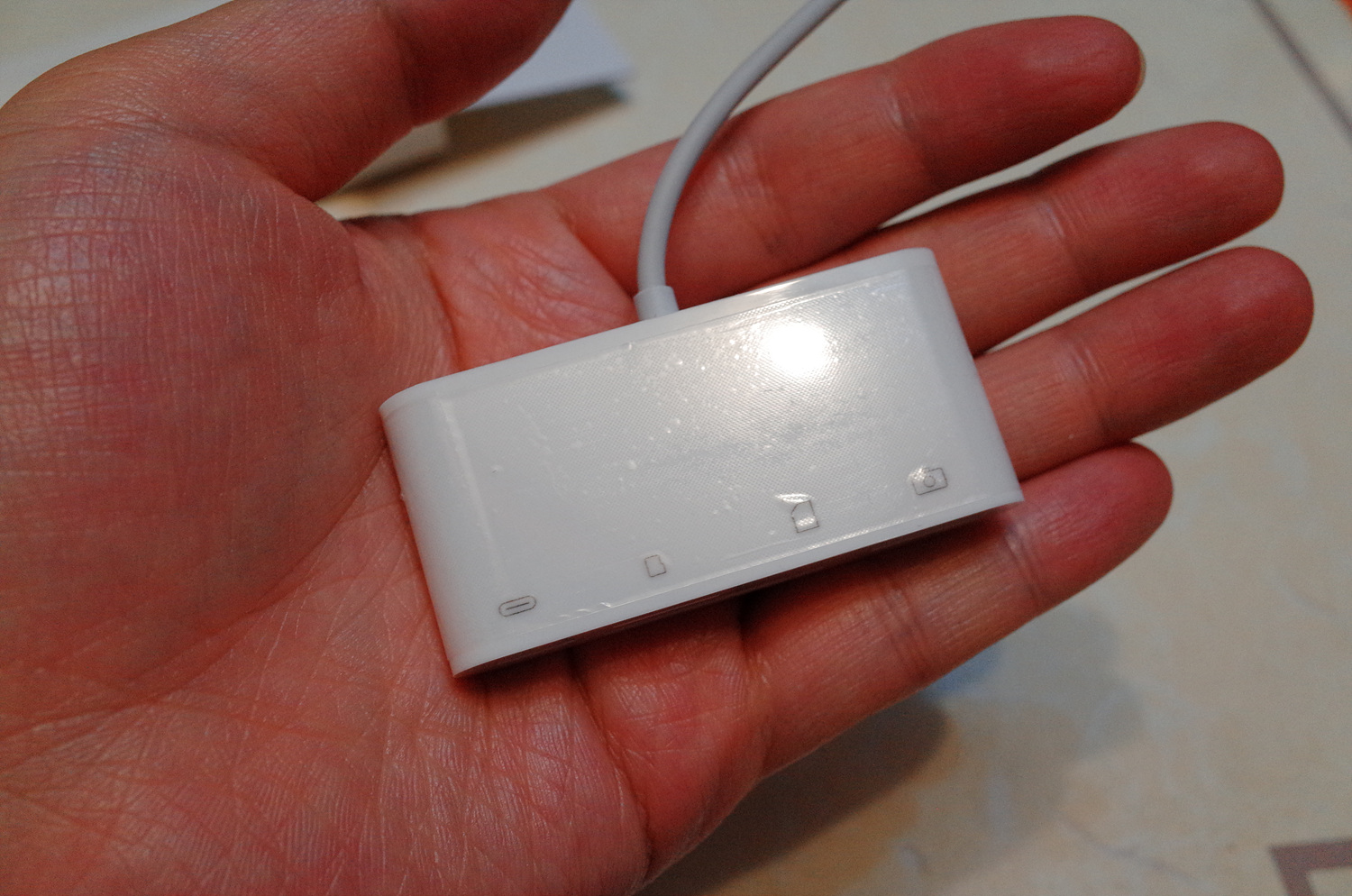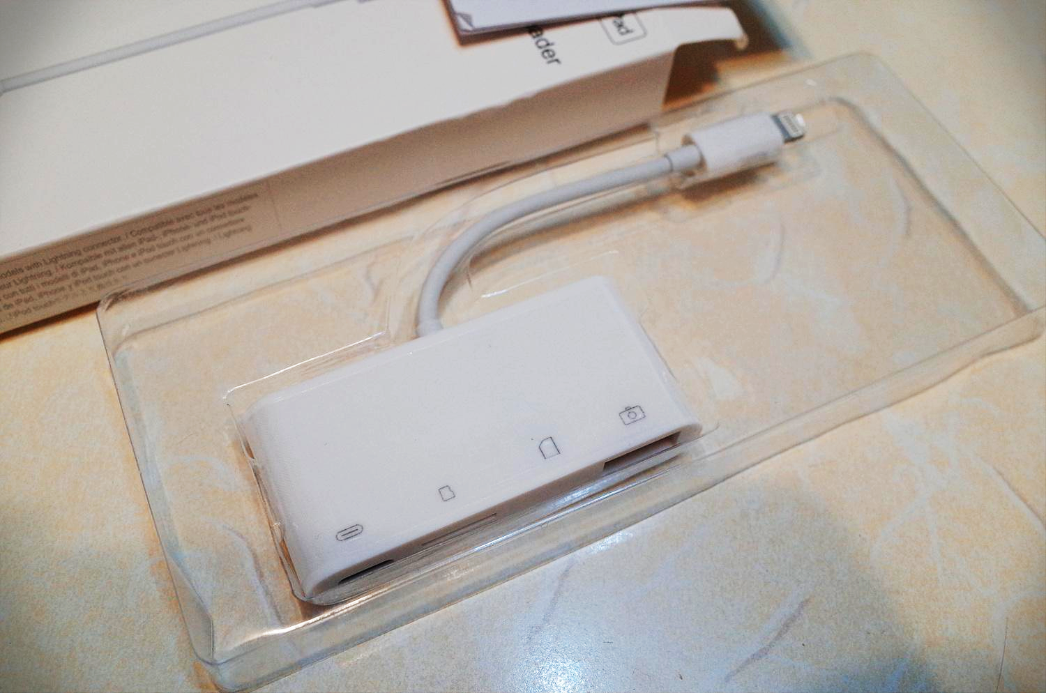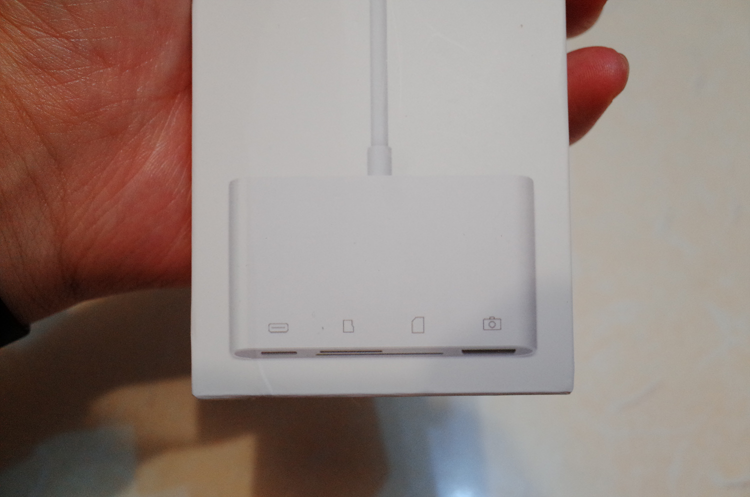 전면에는 아이팟, 아이폰, 아이패드와 호환된다고 써 있다. 4in1 제품이고 카메라에 특화된 허브이다.