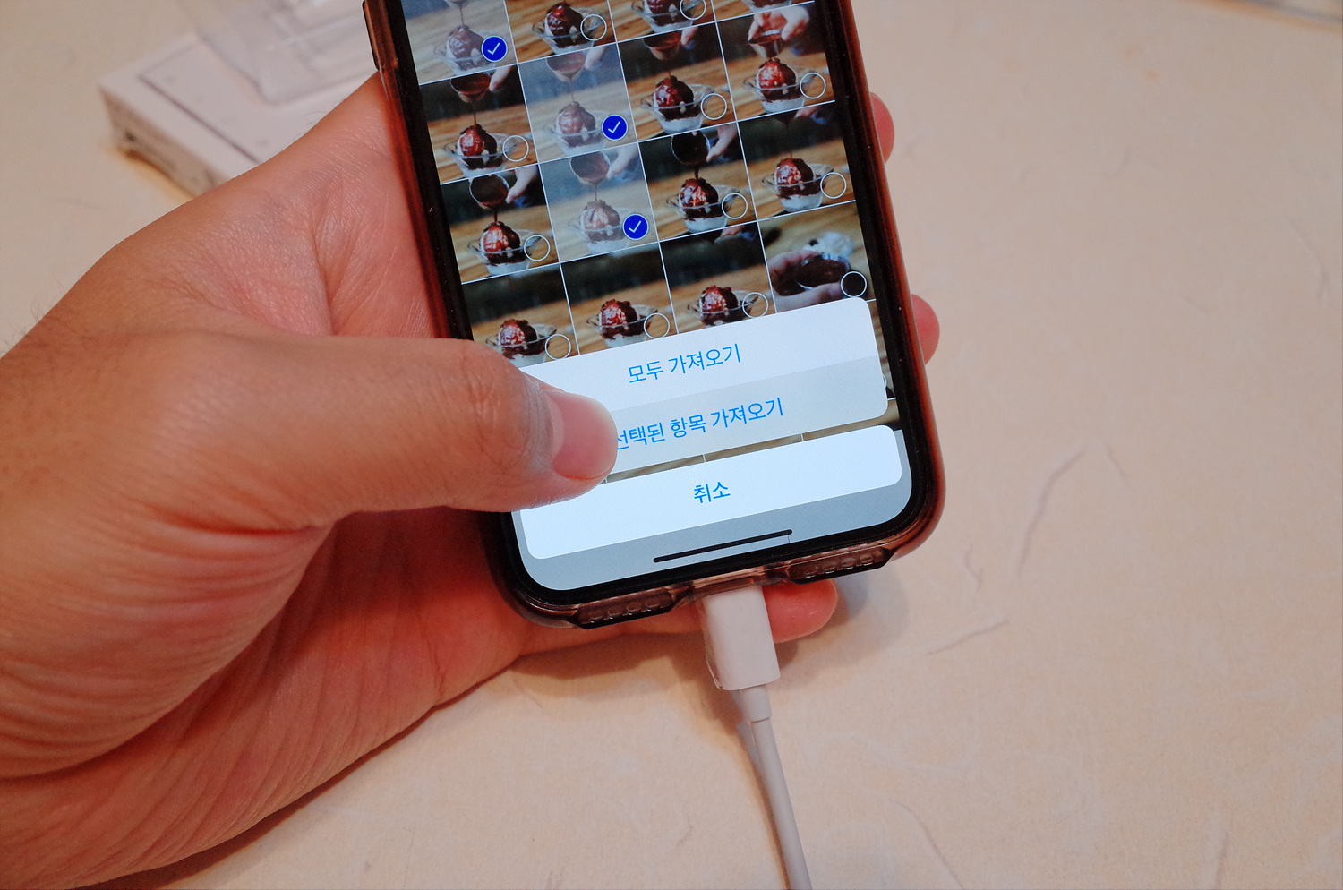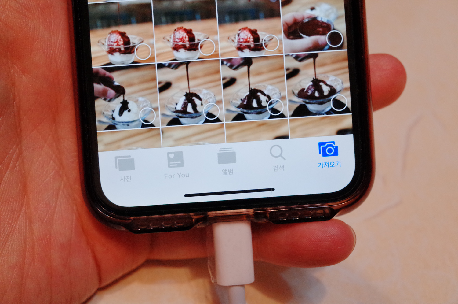 그리고 아이폰에 연결하고 기본 사진 어플에 들어가면 가져오기라는 항목이 뜬다.