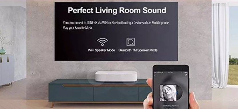 XGIMI Lune 초단초점 레이저 프로젝터는 라이브 스트리밍을 보기에도 매우 좋고 음악 감상용으로도 매우 좋습니다. 블루투스를 통해 스마트 폰 등의 기기와 연결하여 음악 감상도 가능하고 WiFi 스피커 모드도 가능합니다.