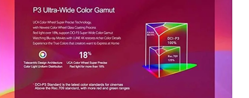 XGIMI Lune 초단초점 레이저 프로젝터에는 P3 울트라 와이드 컬러 색감을 반영하여 더욱 생생하고 또렷한 화질로 영상을 송출합니다.