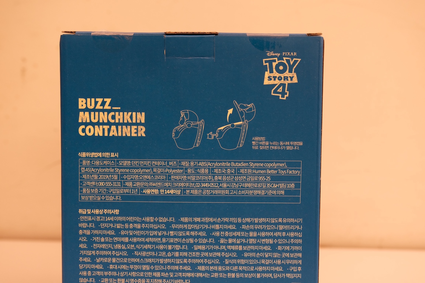 이 장난감의 정식 명칭은 '버즈 먼치킨 컨테이너'다. 사용법도 간단하게 써 있다.