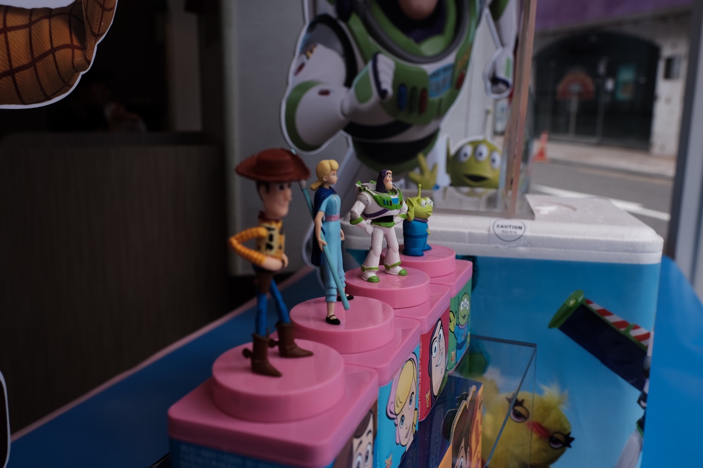 유리 앞에 떡하니 토이스토리4 홍보를 하고 있다. 아이스크림 블럭 및 아이스크림 케익이 토이스토리 테마로 나오는것 같다.