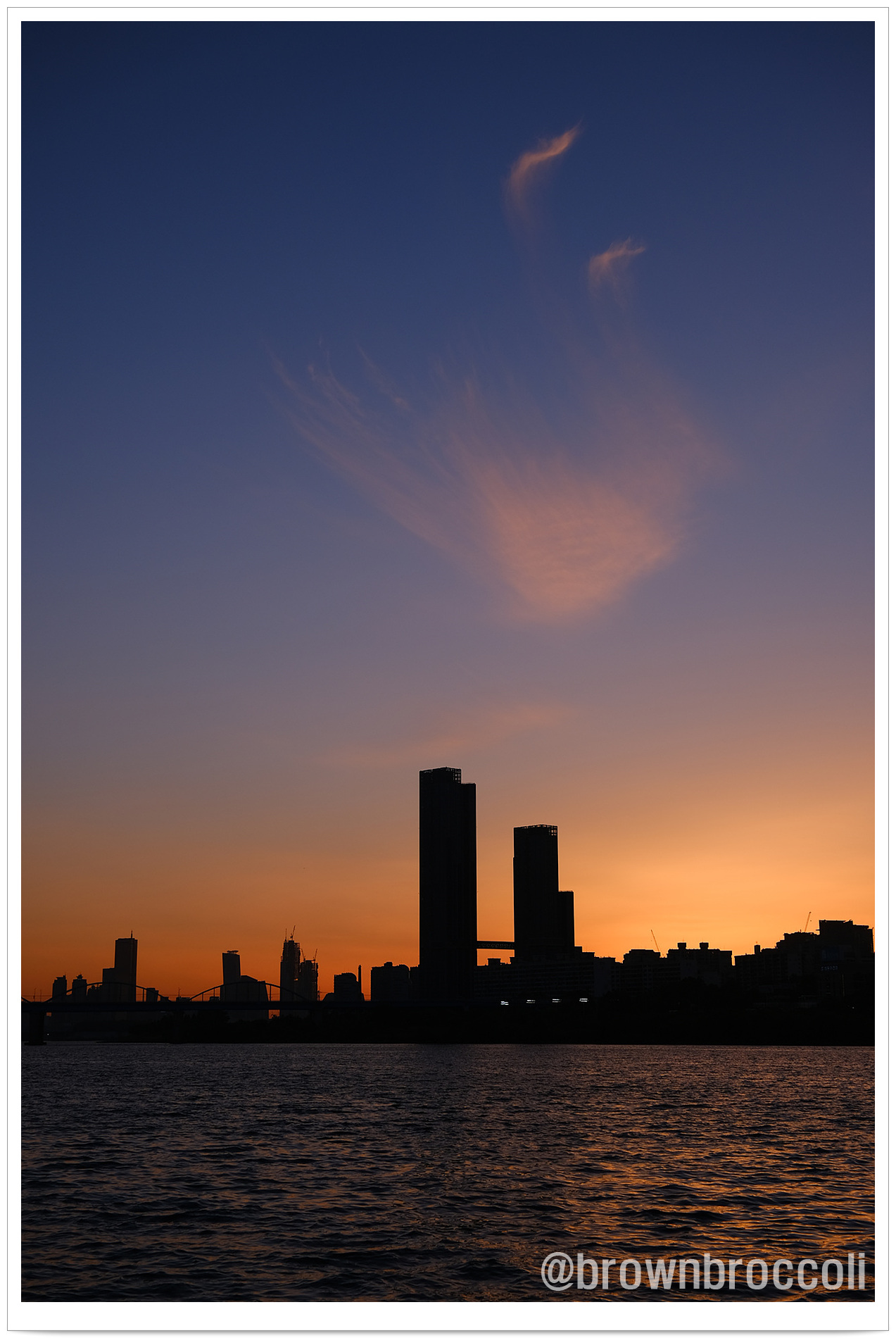 해가 지기 한 시간 전, 반포한강공원에서의 빛이 만들어내는 풍경을 담습니다.