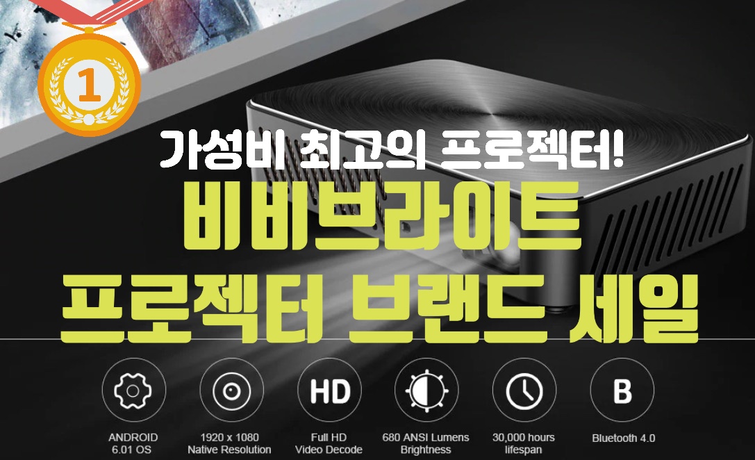 10만원 이하나 10만원대의 저렴하면서 품질도 좋은 프로젝터 브랜드인 비비브라이트(VIVIBRIGHT)에서 전체적으로 세일을 시작합니다. 프로젝터 전문 리뷰어로써 비비브라이트는 가격 이상의 성능을 보여주고 사용 만족도가 높은 편에 속하는 브랜드라고 생각합니다. 입문용 프로젝터로 좋고 대학생용 프로젝터로도 좋습니다. 요즘은 자취방에 프로젝터를 놓고 넷플릭스 등의 영화나 영상을 많이 보는데 정말 가격도 좋습니다.