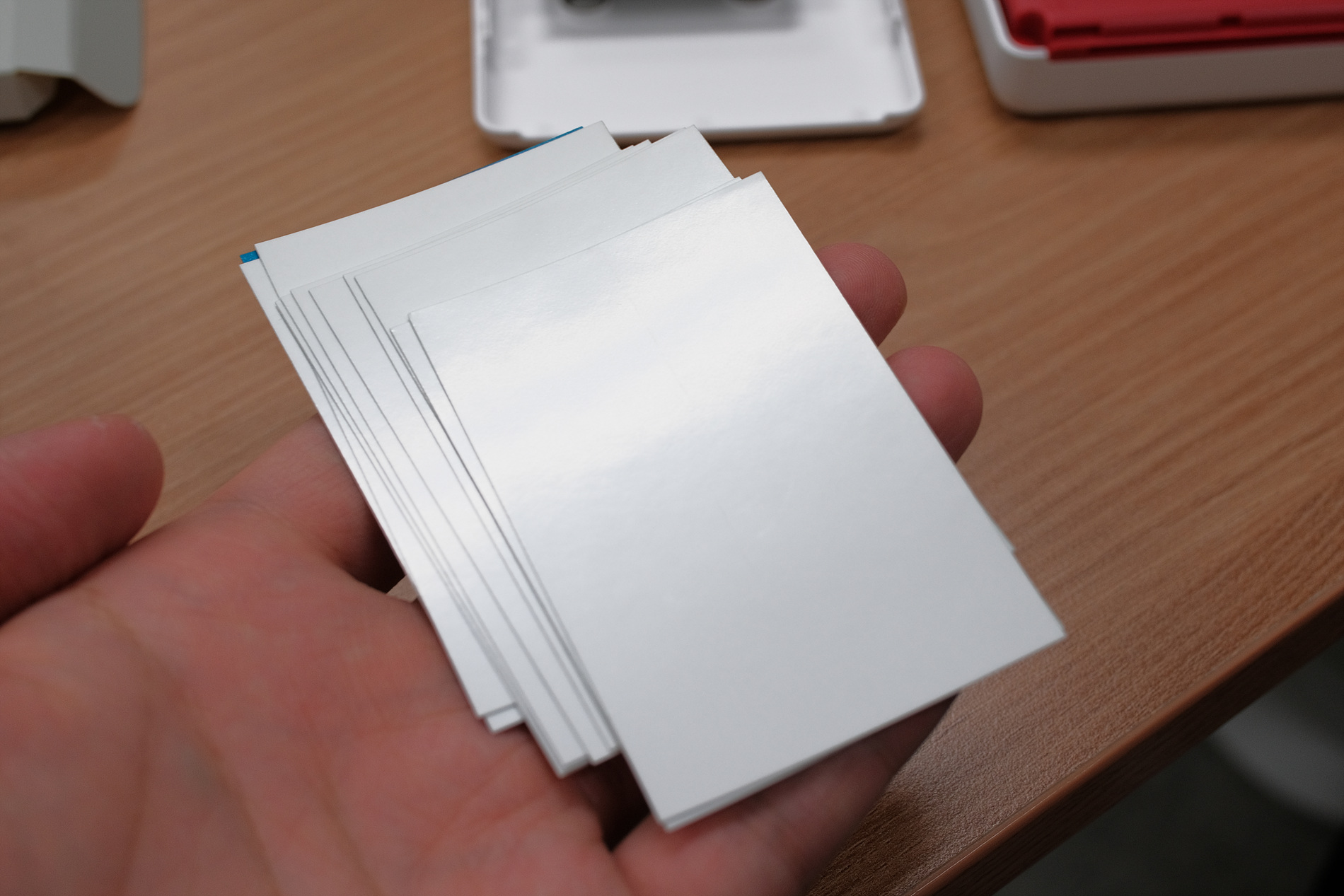 그리고 인화용지를 뜯어서 인화되는 부분을 위로 보이게 하면 됩니다.