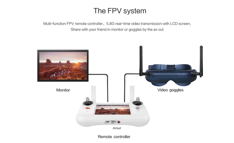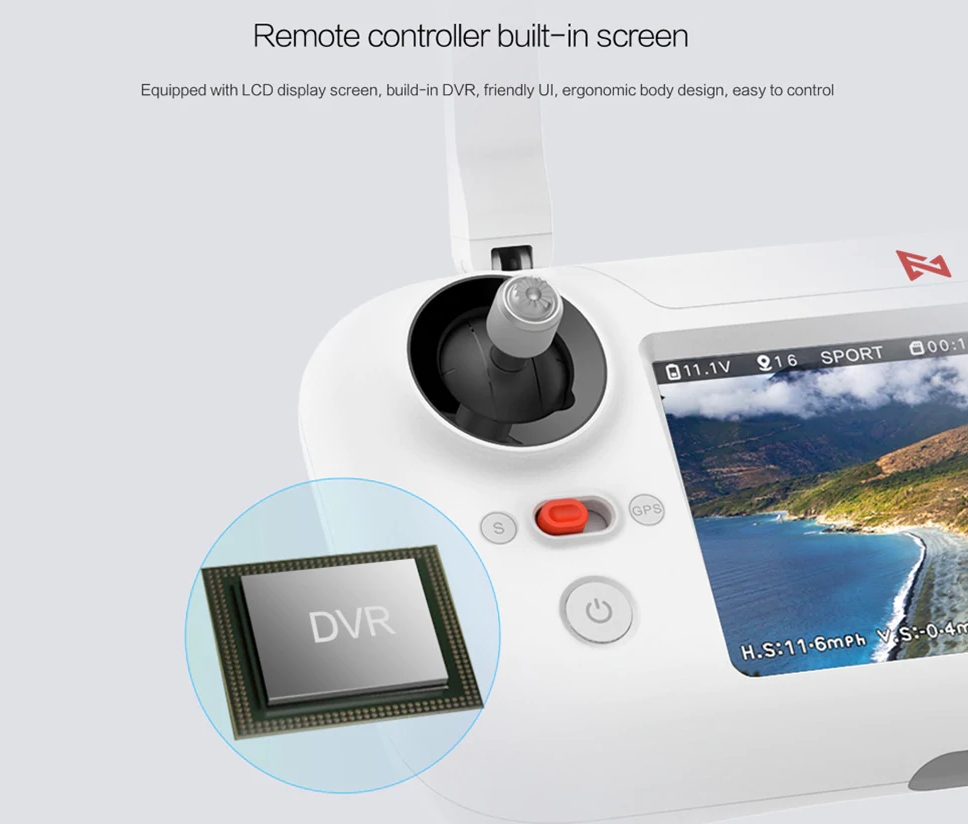 - 원격 컨트롤러는 LCD 화면, DVR 및 사용자 인터페이스가 내장되어 있습니다.