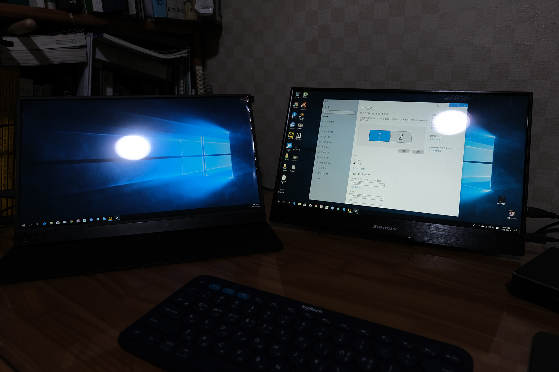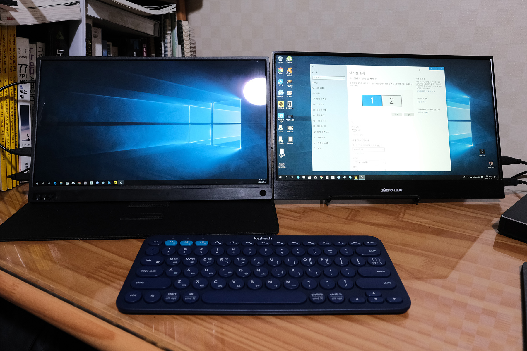 왼쪽에 있는 모니터가 Tbao T15모니터입니다. 배치를 해보았습니다.