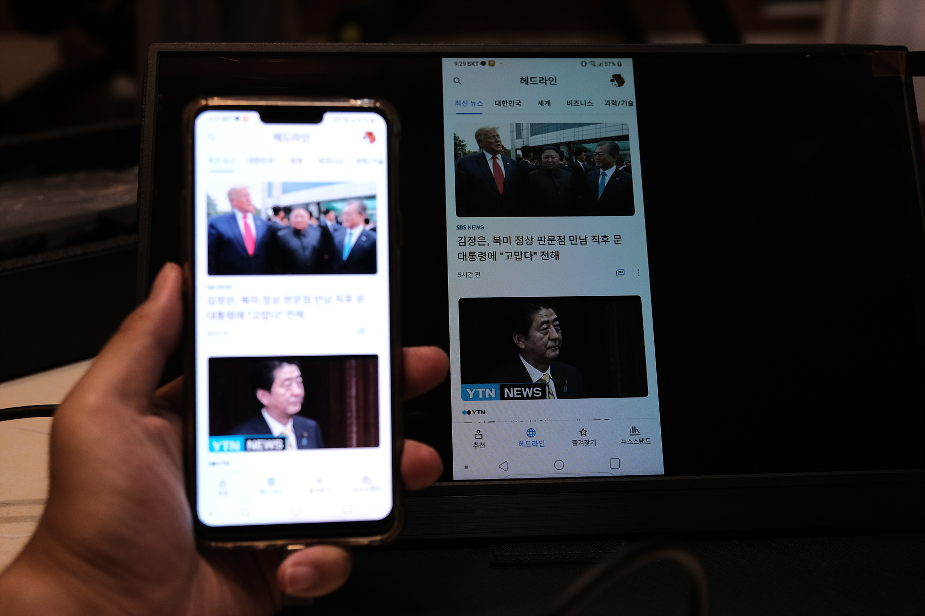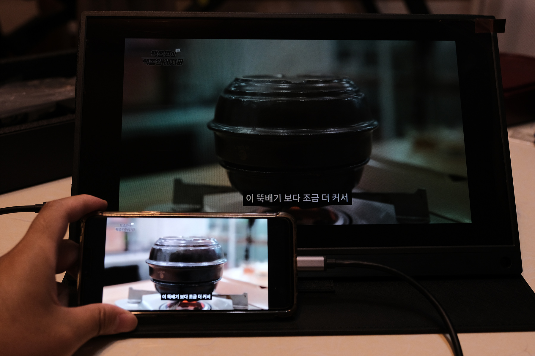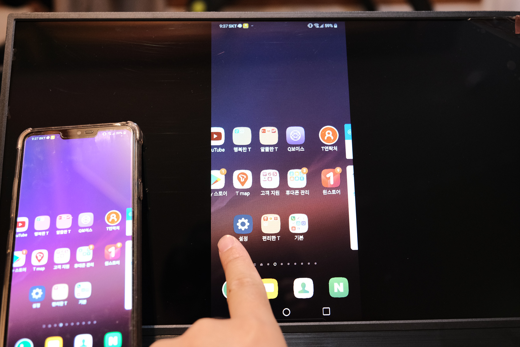 LG G8과 연결해 보았습니다. Tbao T15의 경우, 스마트폰 및 태블릿과 연결시에는 모니터 디스플레이도 터치가 가능하도록 작동합니다.