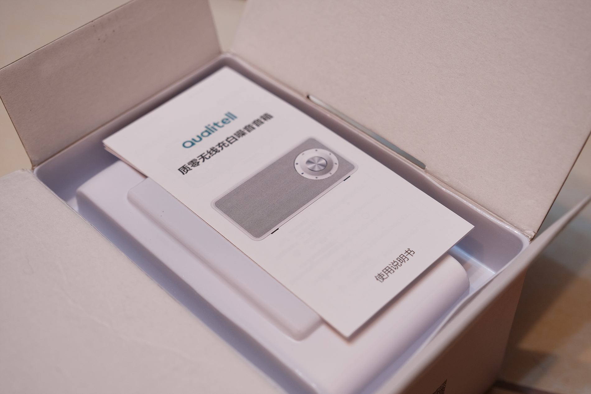 박스를 개봉하니 퀄리텔 스피커의 설명서가 가장 먼저 보입니다.