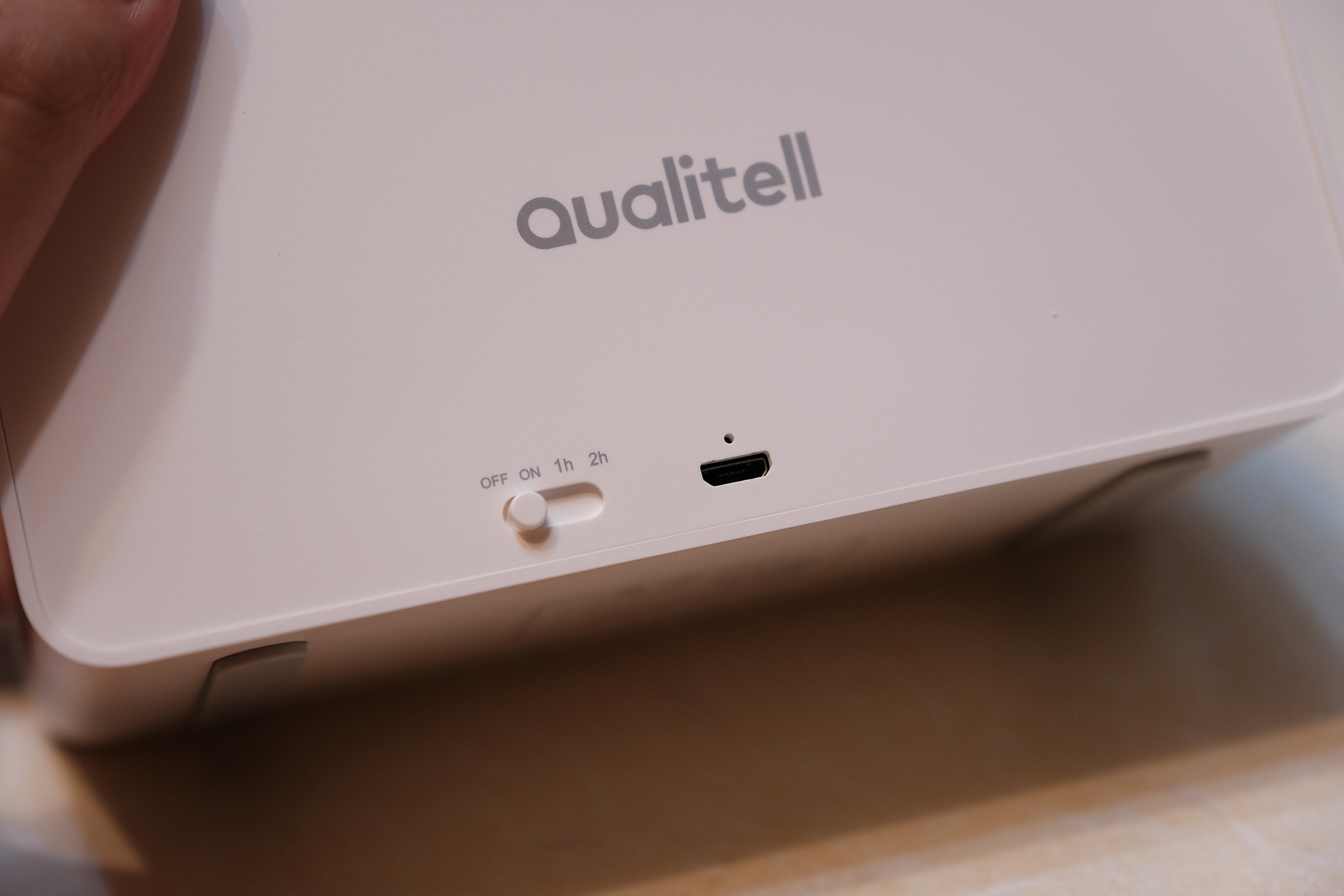 뒷면에는 OFF, ON, 1h, 2h의 4가지 기능이 버튼만 있습니다. 수면에 특화된 버튼인데요. 자기전 1시간 또는 2시간동안 타이머를 걸어놓고 음악이나 수면사운드를 틀어놓을 수 있습니다. 타이머가 끝나면 재생은 멈추고 전원이 꺼집니다.