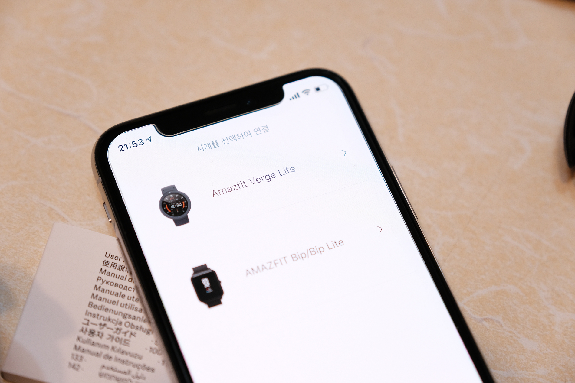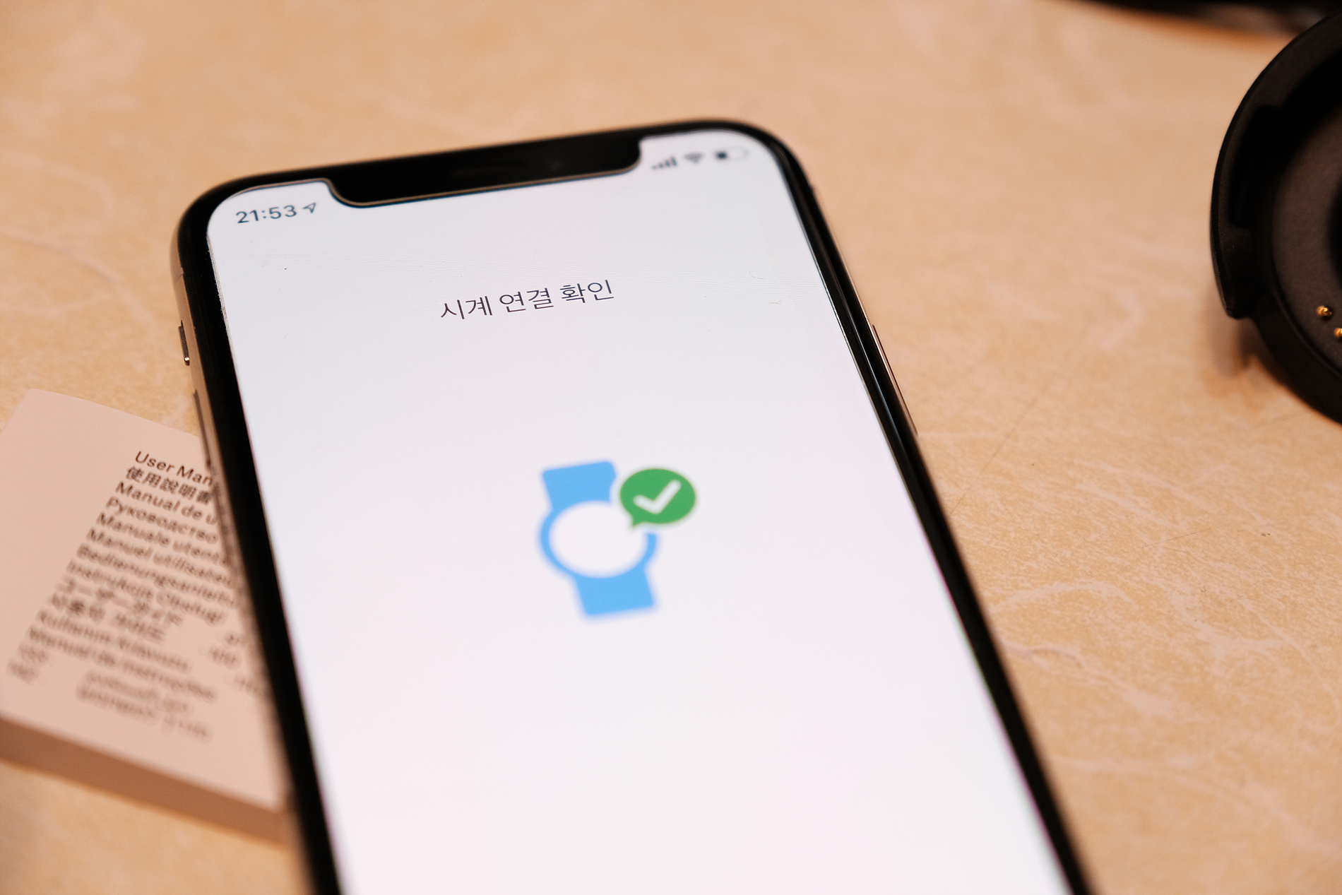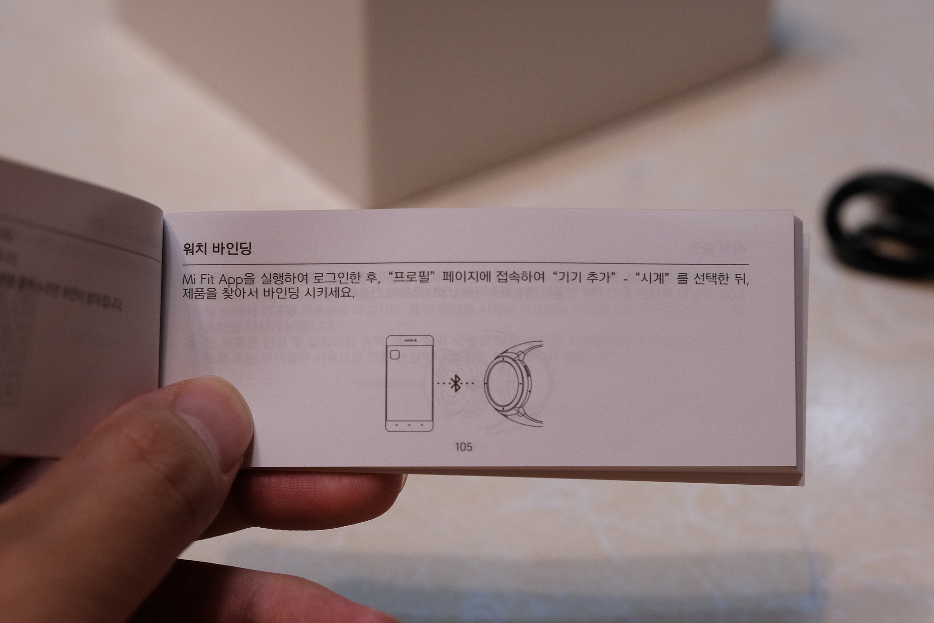 설명서에는 스마트워치와 스마트폰을 연결하는 안내가 친절하게 적혀 있습니다.