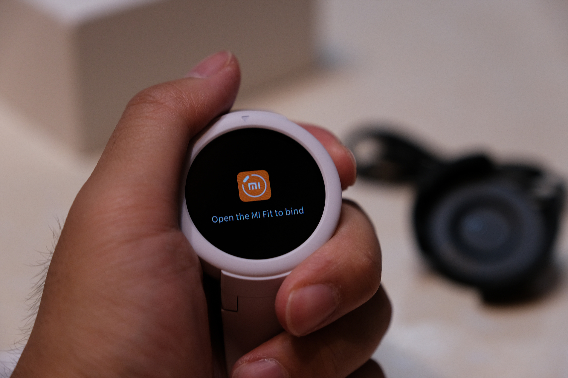 전원을 켜면 바로 미핏어플과 바인드하라고 알려줍니다.