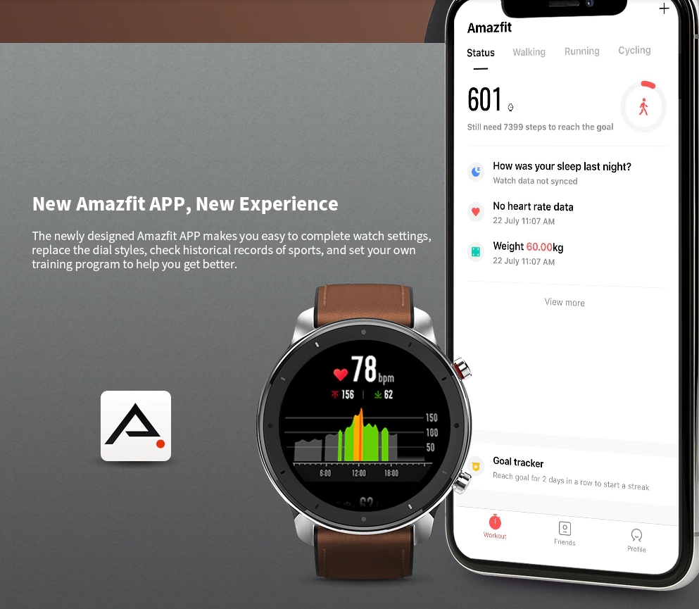어메이즈핏 GTR 스마트워치는 전용앱인 어메이즈핏 앱을 통해서 스마트폰에 활동 정보를 동기화 하고 2배로 활용할 수 있습니다.