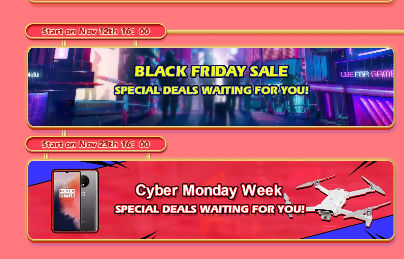 11.11 행사는 10월 30일 부터 시작되며, 11월11일에 본 행사를 하고 이어서 바로 블랙프라이데이 행사로 넘어갑니다. 매일매일 뱅굿 홈페이지를 둘러보시면 미밴드, 어메이즈핏 스마트워치, 샤오미 스마트폰, 드론, 3D프린터, 노트북 등 다양한 제품들을 선착순으로 구매하실 수 있습니다.