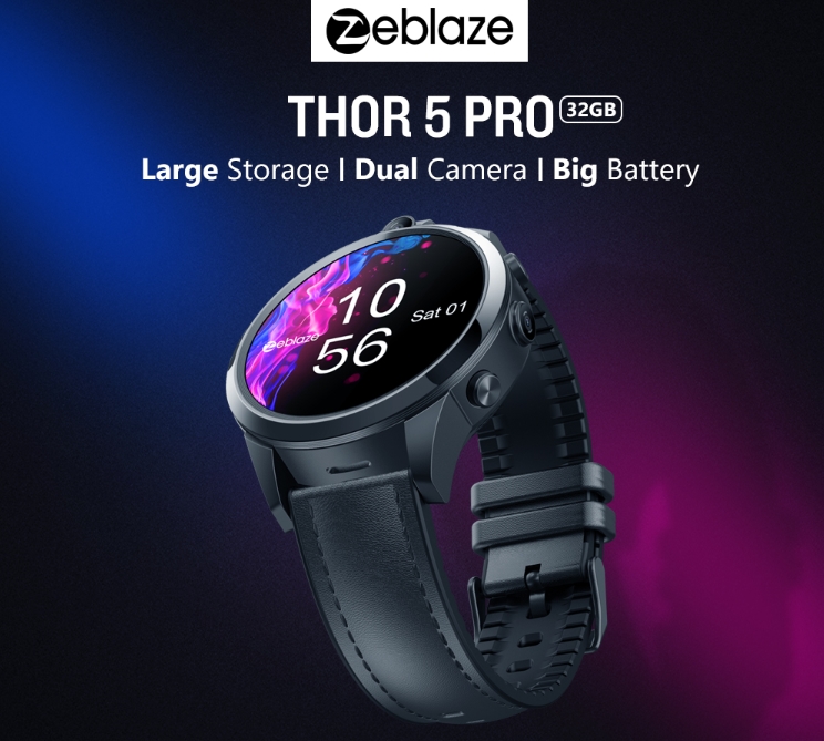 1. Zeblaze THOR 5 PRO Face Identify Dual Camera Lock Screen Pattern 4G LTE Smart Watch Phone - Black