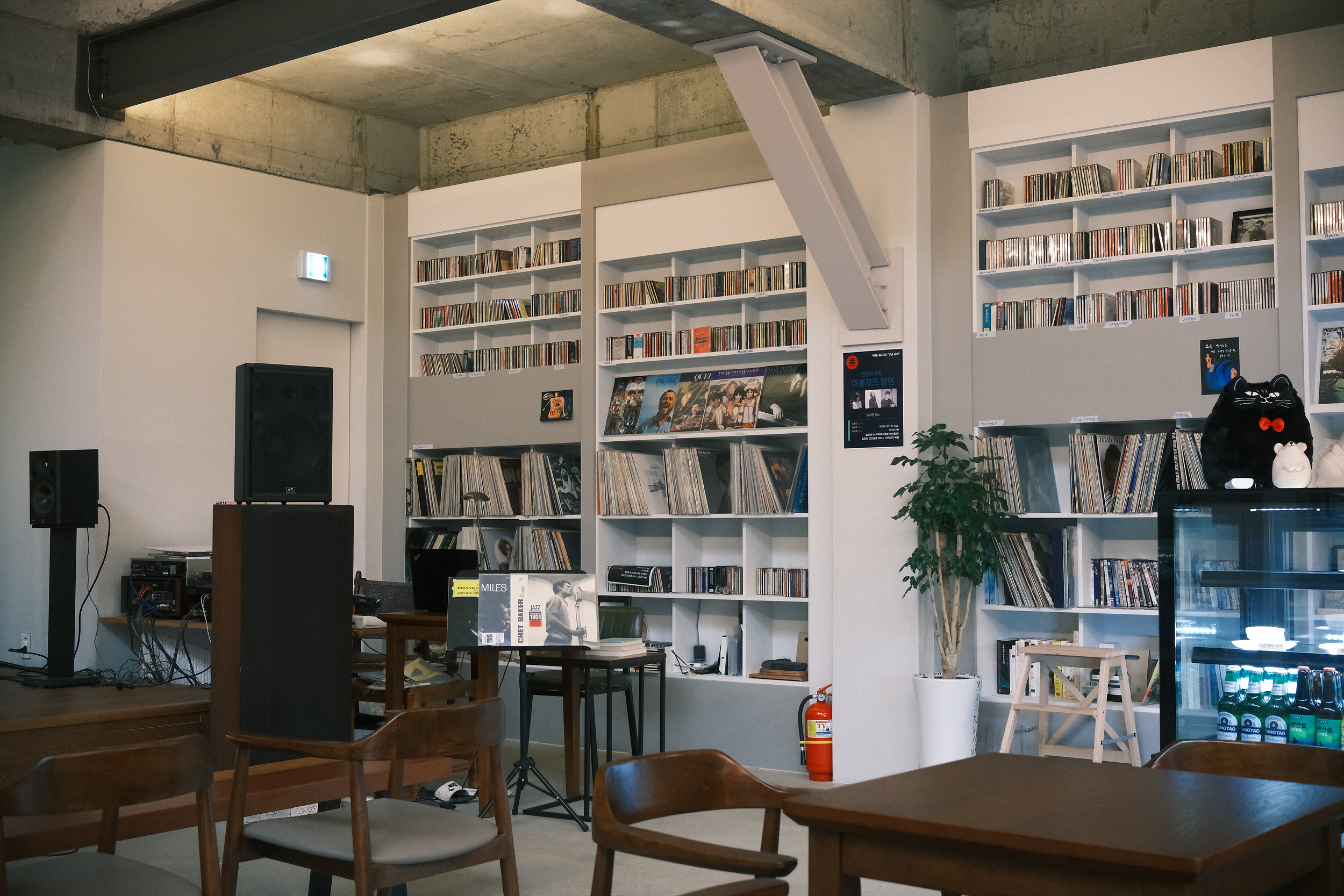 공연하는 카페 답게 LP및 앨범들이 가득히 진열되어있다.