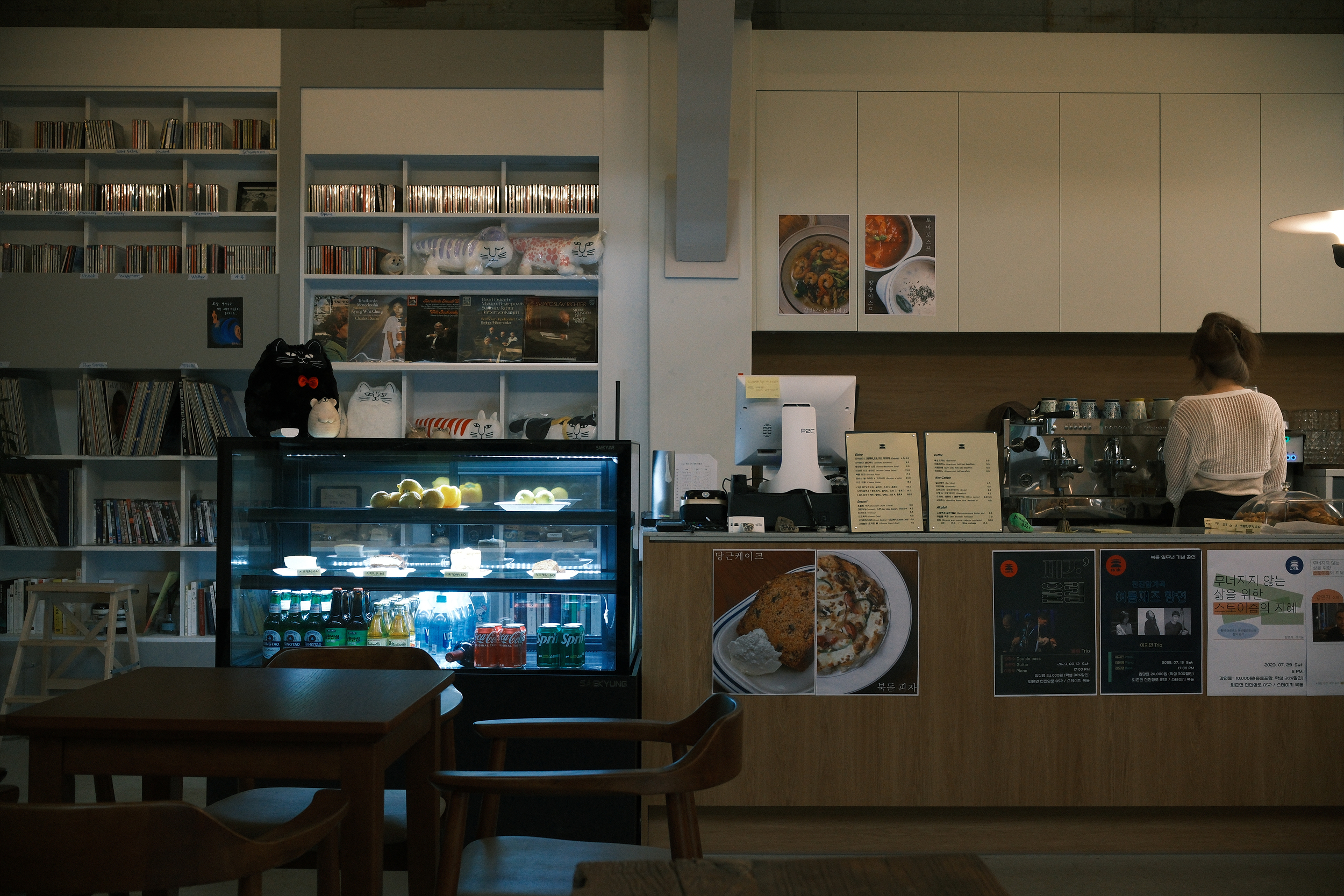 오늘같이 비가오는 여름날, 영화 '호우시절'이 생각나게 하는 풍경이다. 이곳에 위치한 카페 '북돋' 은 차분한 모습으로 우리를 환영했다.